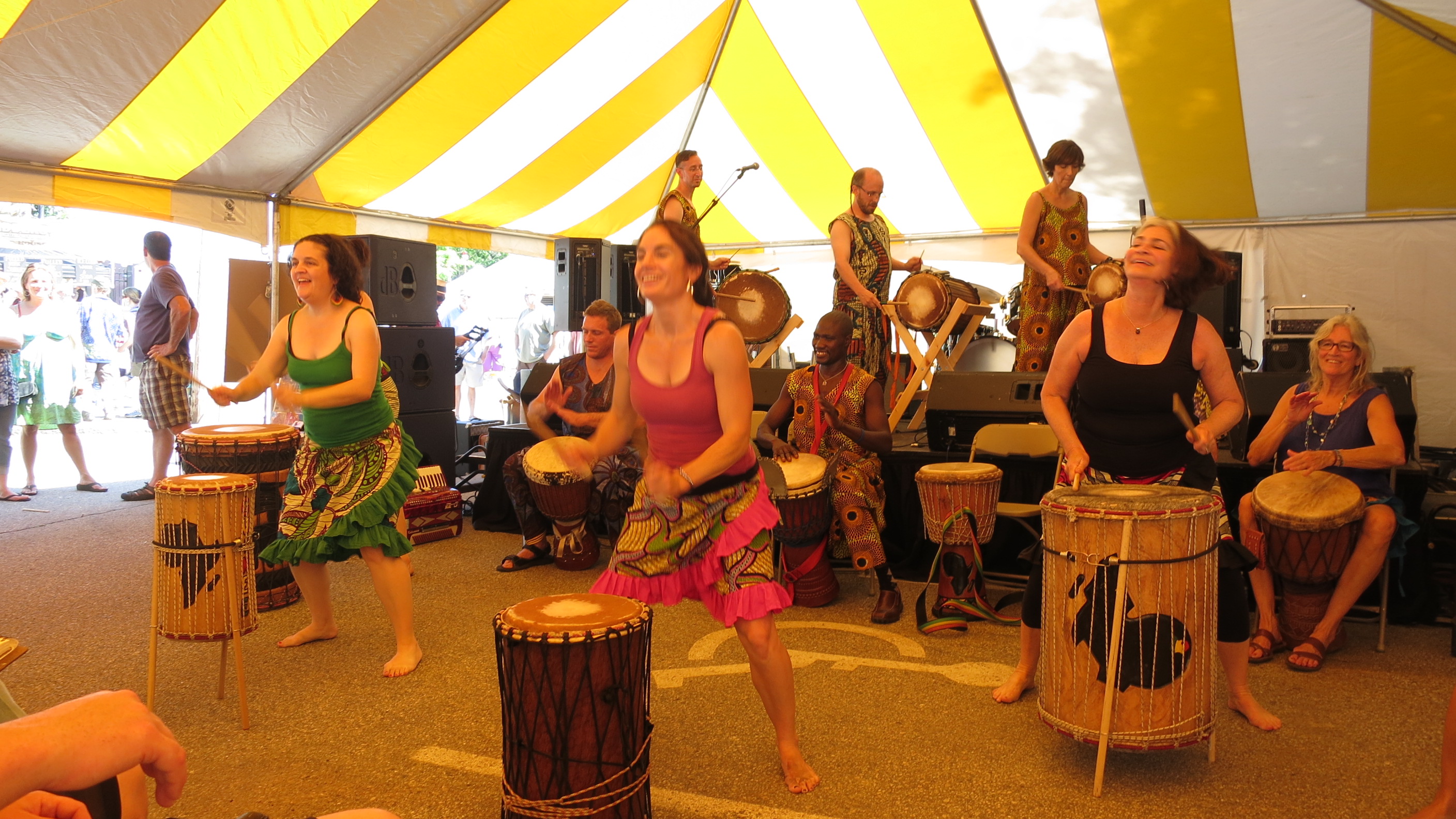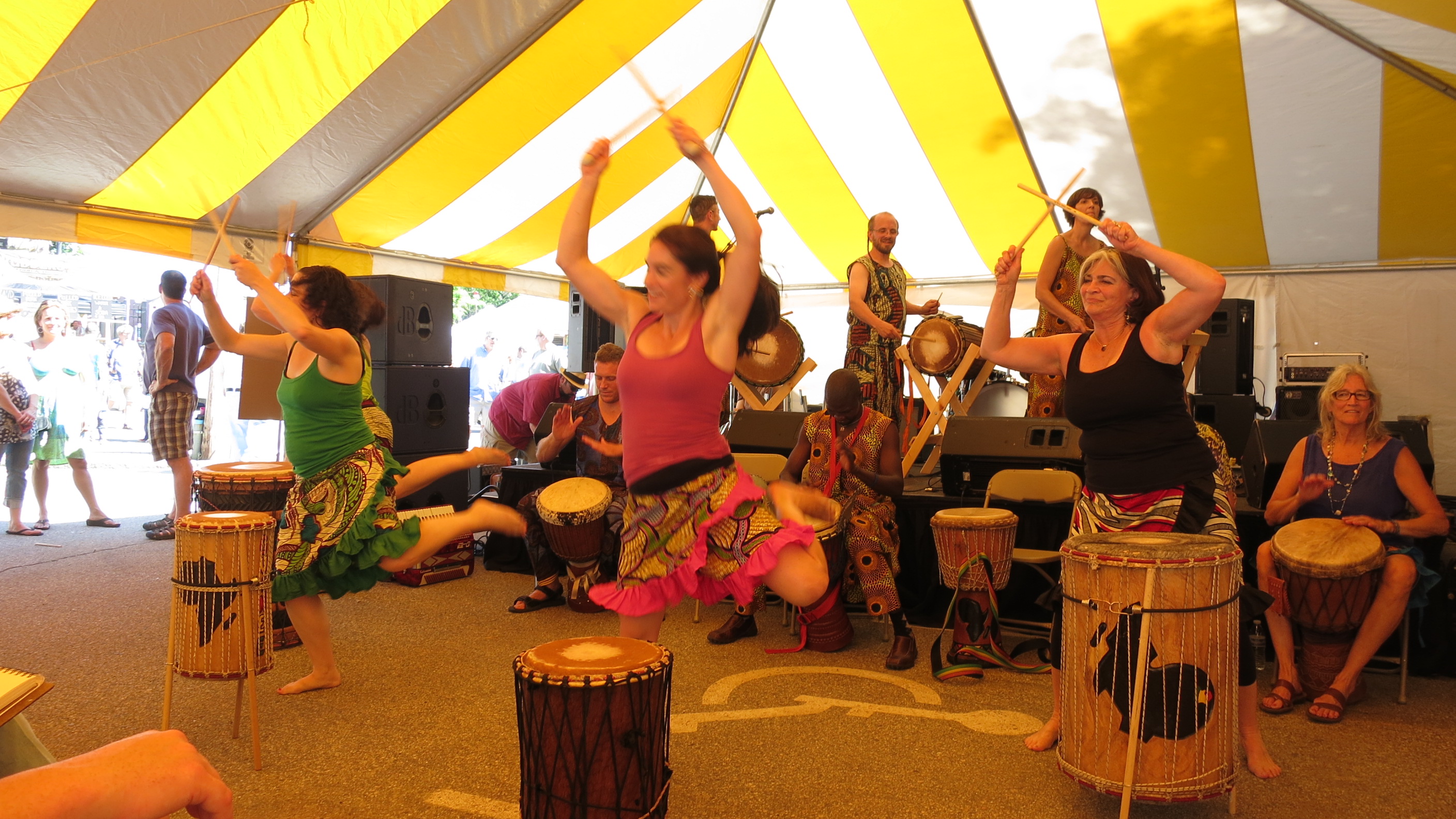 On June 15, 2013 some of the students from Namory and Liz’s drum and dance classes at the Dance Hall performed for the Kittery Block Party! It was a wonderful day and we’re already looking forward to next year!
